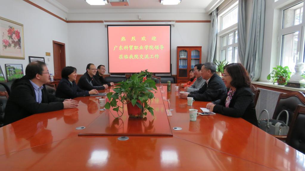 广东科贸职业学院院长李志伟与学院党委书记、院长王娟丽互相交流了两所院校的发展情况,同时王书记还介绍了学院内函建设与校企合作情况。