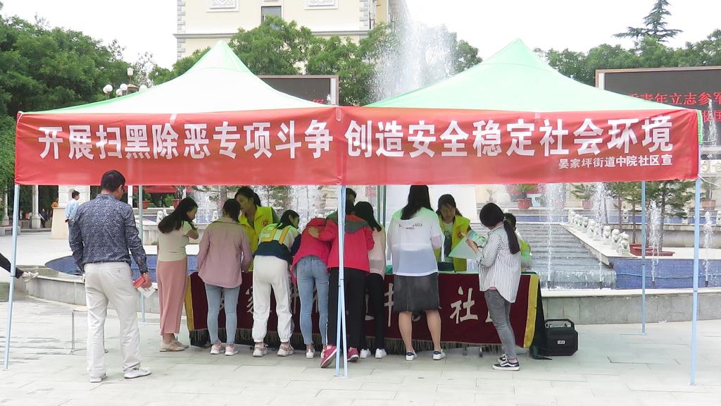 5月23日,学院联合晏家坪街道中院社区,在学院文化广场进行“开展扫黑除恶专项斗争、创造安全稳定社会环境”为主题的宣传活动,活动中社区与学院保卫处工作人员组织学生进行了问卷调查、发放传单、现场讲解等活动。