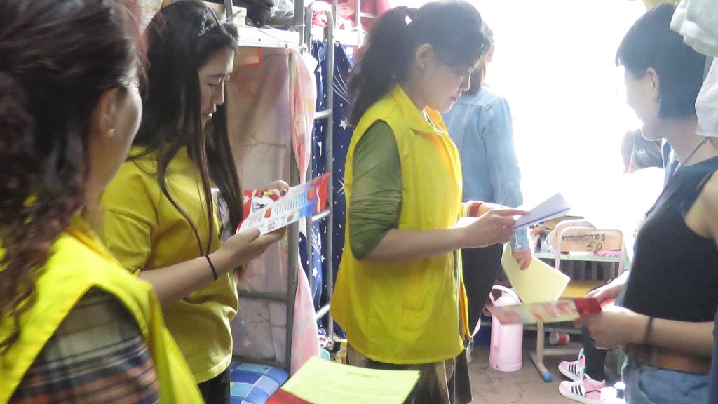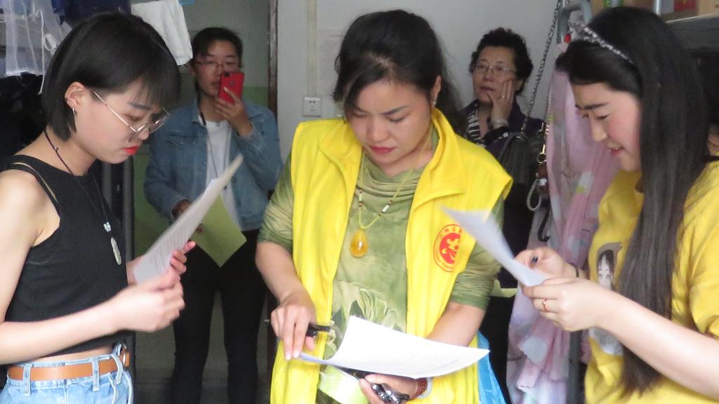 社区工作人员深入学生宿舍发放资料