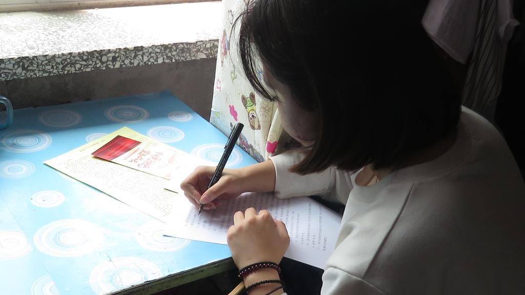 学生在宿舍填写调查问卷