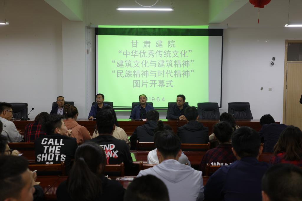 开幕式伊始,李春雨传达了甘肃建筑职业技术学院关于组织开展“中华优秀传统文化”“建筑文化与建筑精神”和“民族精神与时代精神”图片展览活动的通知。学院党委委员、党委副书记王继伟同志在讲话中,对图片展的前期准备工作给予了充分的肯定,对为图片展筹备工作而付出努力的各部门、各系和同学们的艰苦训练表示了由衷的感谢。并重申本次图片展“学习弘扬民族时代精神和建筑精神,继承和发扬中华传统美德与优秀文化”这一鲜明主题。