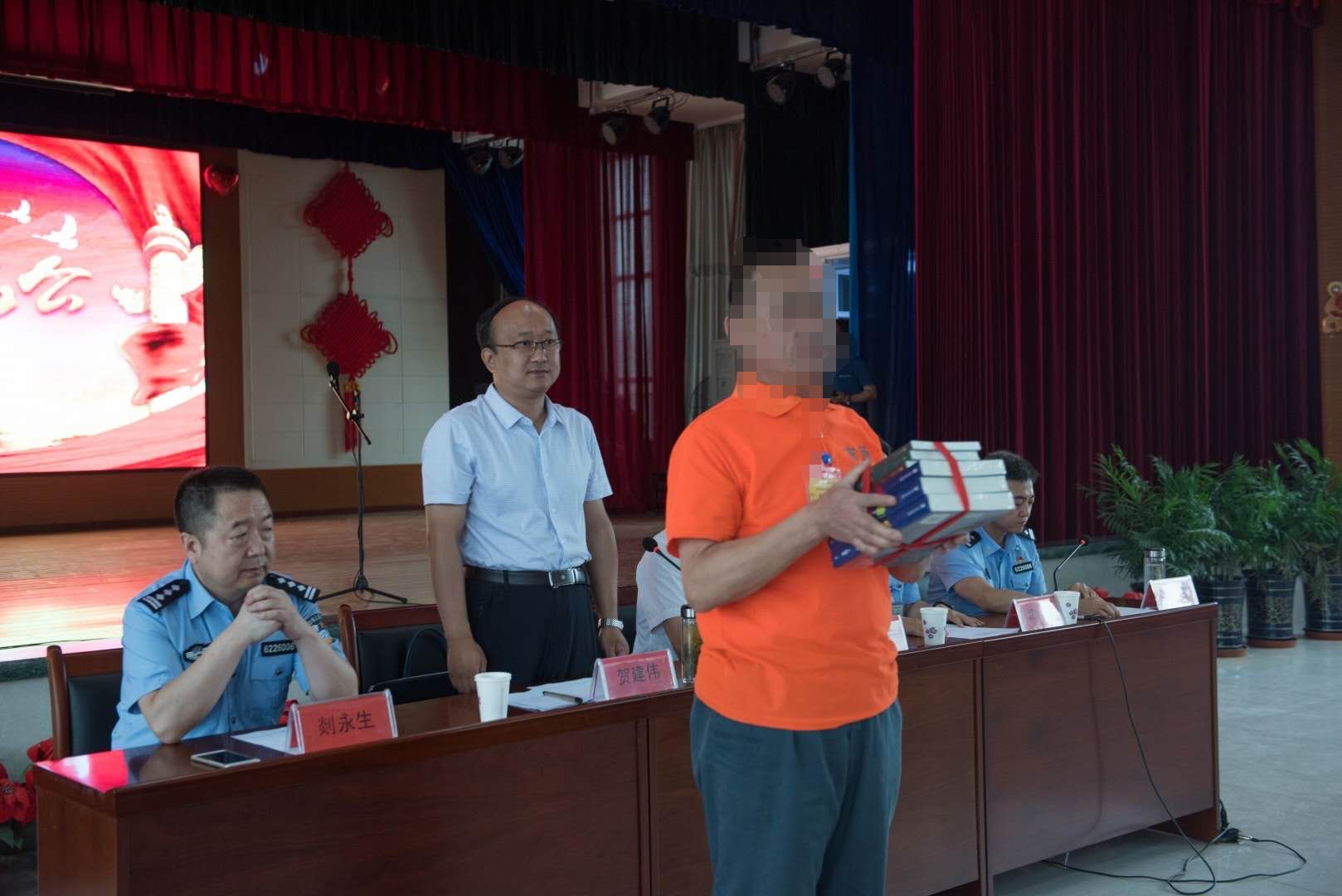 活动在庄严的国歌声中拉开帷幕,兰州市司法局强制隔离戒毒所副政委沈勇同志致辞,受邀前来学院纪委书记贺建伟和兰州战役纪念馆馆长瓮志义发表讲话。期间,我院及兰州战役纪念馆分别于该所签订帮教协议书,并正式向该所授牌设立“毒品预防警示教育基地”,贺书记代表学院向戒毒学员代表赠送了爱心图书和生活用品。到场嘉宾还共同观摩了强戒所举办的合唱比赛和康复训练项目展示,并在领导的陪同下参观了该所的基础设施。