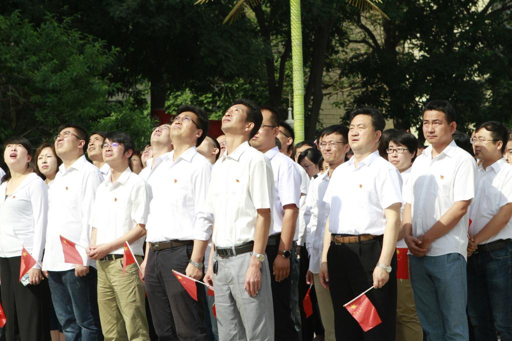 “起来,不愿做奴隶的人们,把我们的血肉筑成我们新的长城”------7月1日早上,伴随着雄壮的《中华人民共和国国歌》,甘肃建院师生在文化广场举办了升国旗活动。学院党委委员、党委书记、院长王娟丽同志及领导班子、校本部的全体师生参加了升国旗活动。党委委员、党委副书记王继伟同志主持活动。