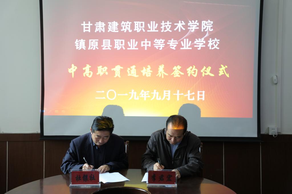 随后,双方就合作事宜进行了深入的交流,就镇原职专加入甘肃省建筑职教集团达成了意向,并签订了《汽车检测与维修技术》、《焊接技术与自动化》两个专业2020年中高职贯通人才培养协议,协议招生40人。