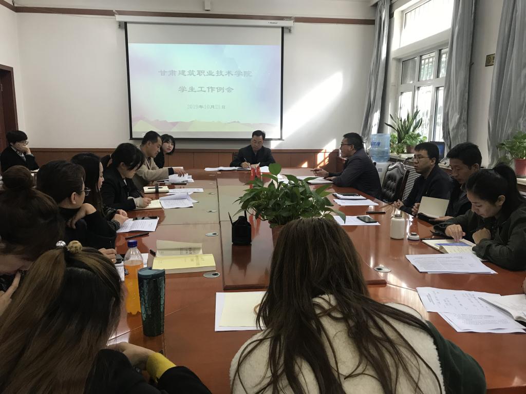 会上,学生工作处许庆兵副处长带领大家认真学习了《甘肃省教育厅 甘肃省财政厅 甘肃省民政厅甘肃省人力资源和社会保障厅 甘肃省扶贫开发办公室 甘肃省残疾人联合会关于印发<甘肃省家庭经济困难学生认定办法>的通知》(甘教资助〔2019〕3号)以及《甘肃建筑职业技术学院家庭经济困难学生认定办法》。学生工作处宋炜弘老师对2018-2019学年度各类奖学金以及三好学生、优秀学生干部评审中出现的问题进行了通报,希望大家即知即改,认真做好评优收尾工作。环境与市政工程系专职辅导员、班主任张文琴,建筑系专职辅导员、班主任骆雯,分别就清华大学辅导员能力提升高级研修班学习心得体会以及在实际工作中的运用情况作了交流发言。