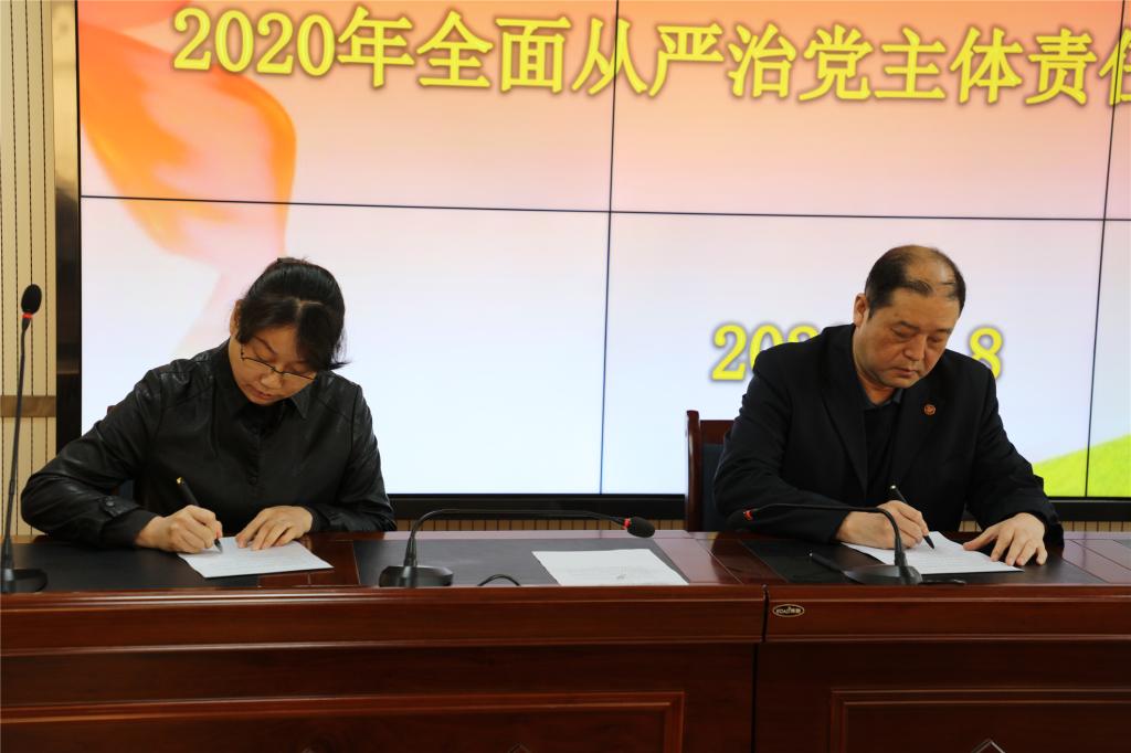会上,党委书记、院长王娟丽与党委领导班子成员签订了《落实全面从严治党“两个责任”责任书》、领导班子成员与分管部门的主要负责人代表签订了《全面从严治党主体责任书》。