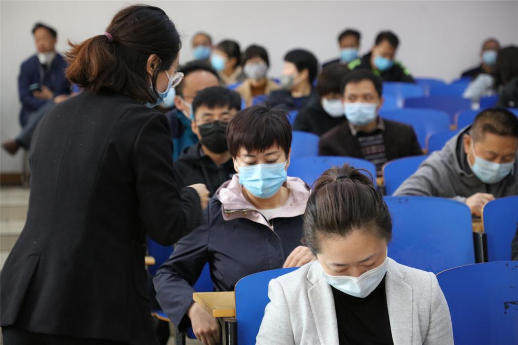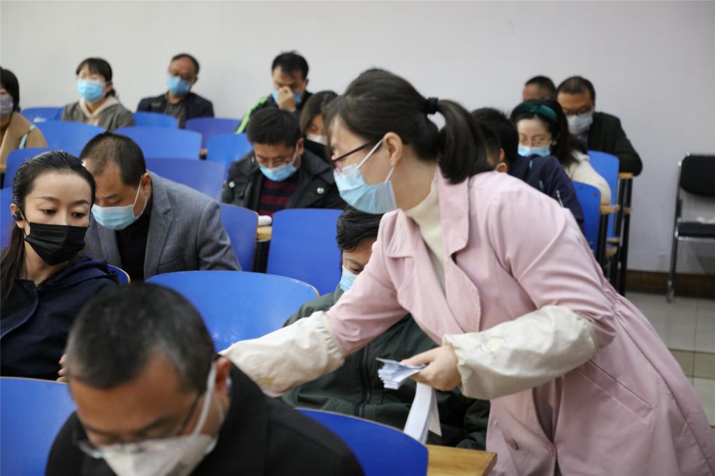 考核组任长颖介绍了此次民主测评填表说明,全体参会人员通过手机扫描测评二维码,对学院领导班子和领导干部履职、政治素质等方面进行了民主测评。