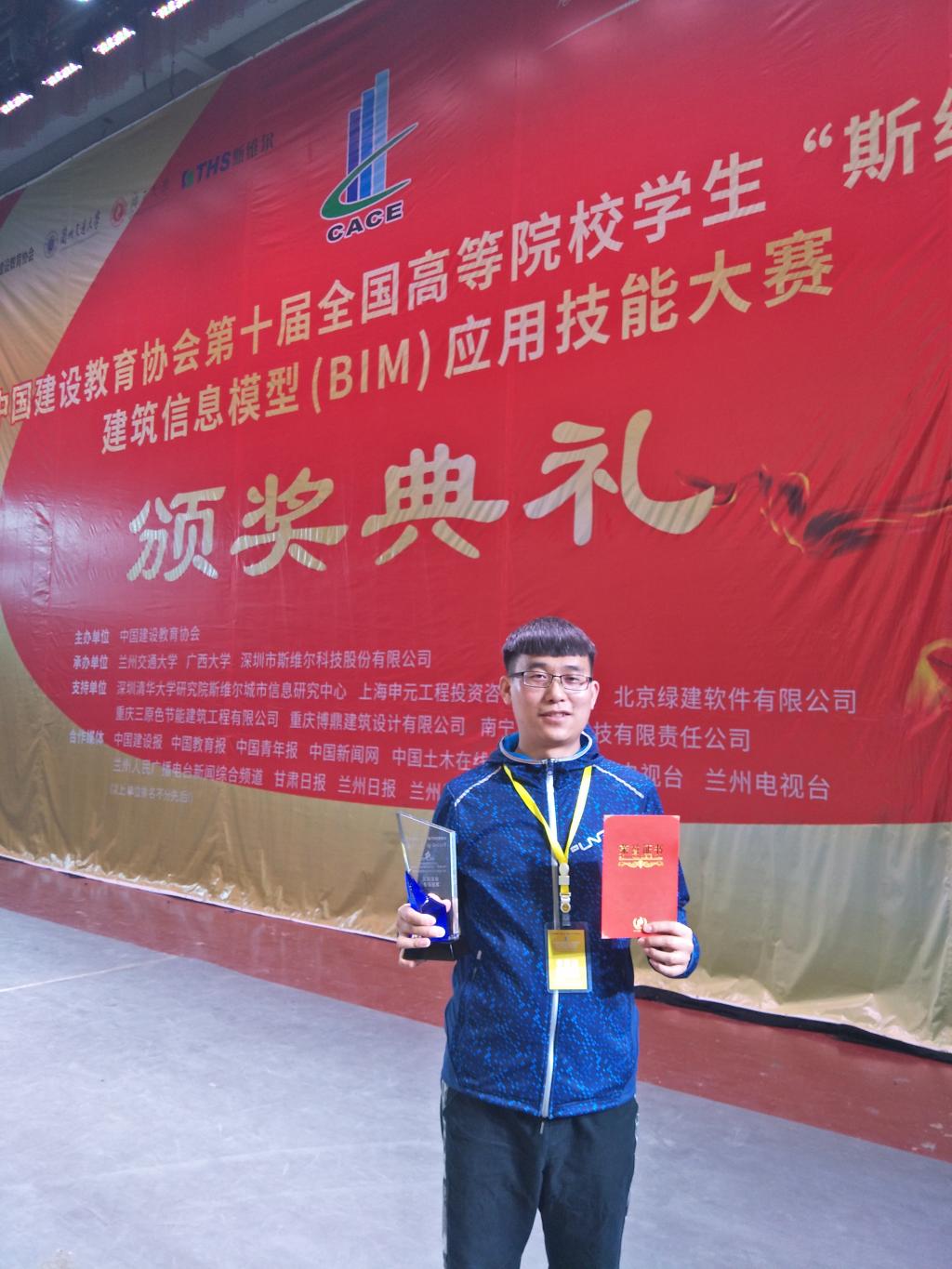 曾获第十届全国高等院校“斯维尔杯”BIM应用技能大赛工程造价全国冠军、全能一等奖、工程管理一等奖、工程设计三等奖。