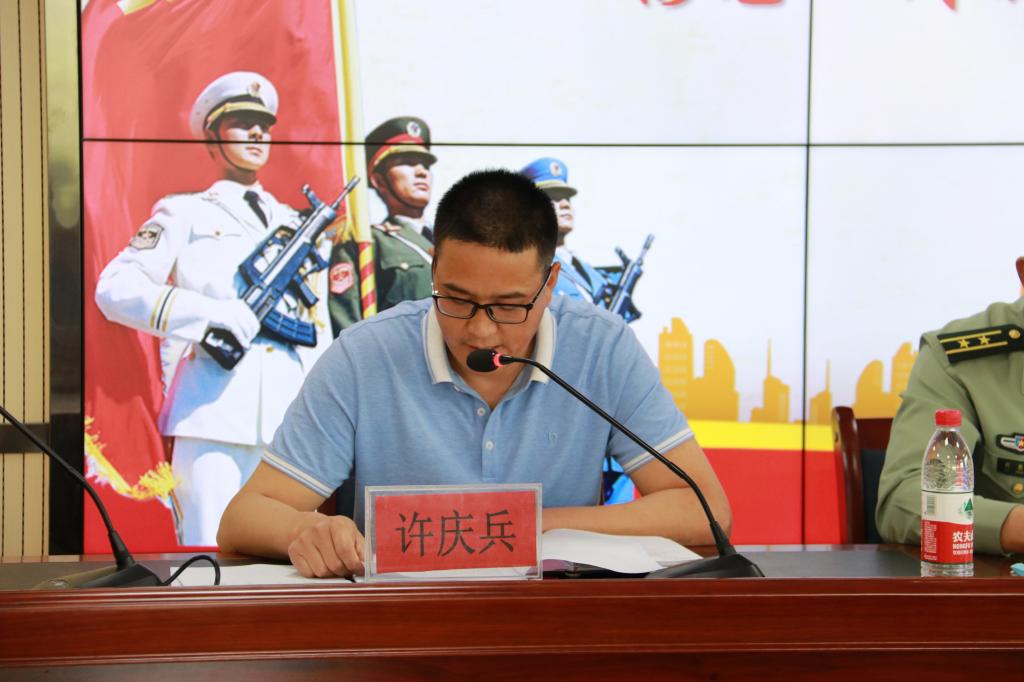 征兵工作站站长、学生工作处副处长许庆兵宣读文件