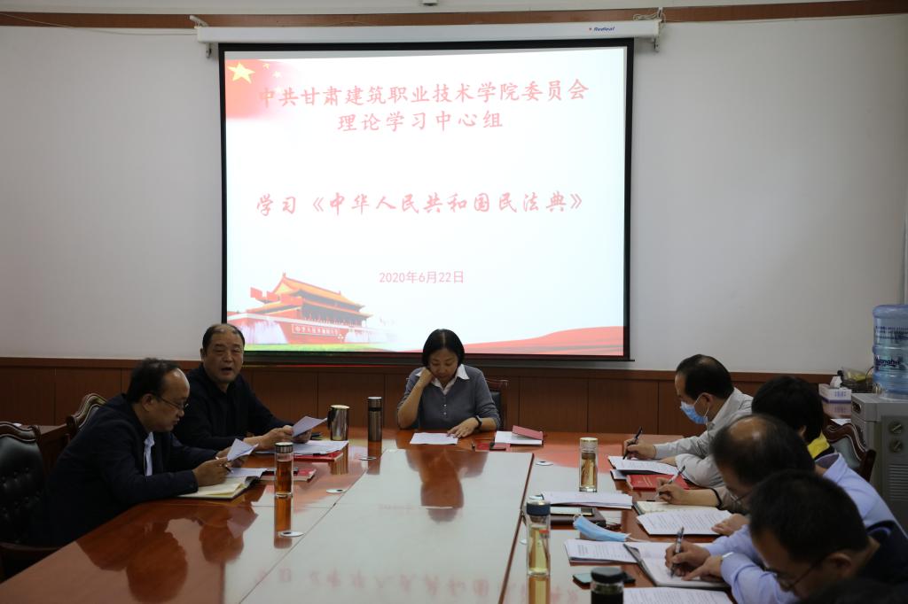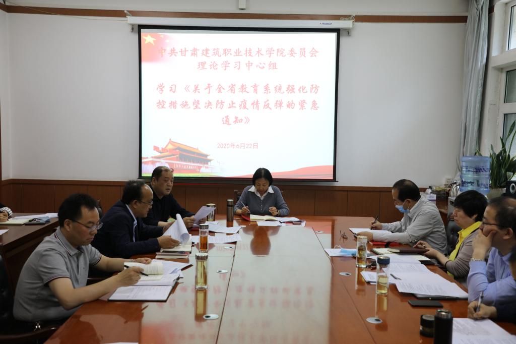 6月22日,甘肃建院党委理论学习中心组组织学习,学院党委书记、院长王娟丽及中心组成员参加学习,党委副书记王继伟主持。