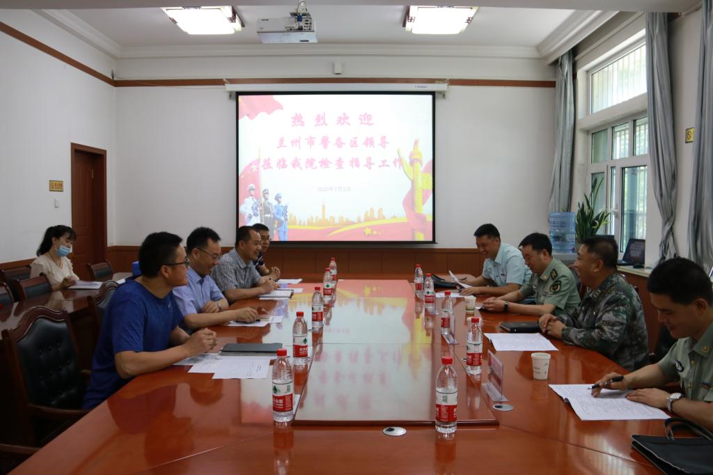 7月2日上午,兰州市警备区动员处参谋尤洋、孙万芃,七里河区人民武装部部长谢宏胜和政委舒锋同志一行,莅临学院检查指导2020年大学生征兵工作进展情况。学院党委委员、副院长高忠有参加了会议,征兵工作站成员、征兵工作领导小组办公室成员代表参加了会议。