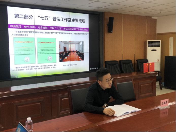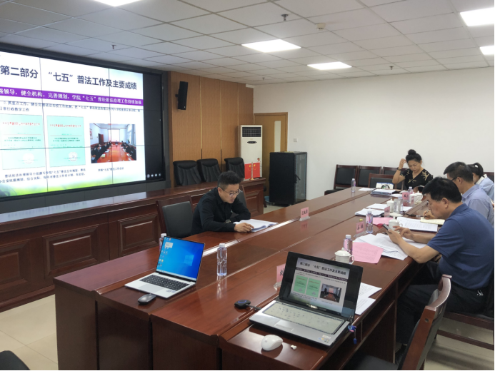 经过数日准备,学院依法普法工作领导小组办公室对照《“七五”普法检查验收考评任务分解表》近60条要求逐条将我院五年来普法相关资料收集、整理、编纂成册,并于2020年8月18日下午由学院普法办公室主任郝昭及普法联络员苏毅前往甘肃省地矿勘查局六楼会议室参加汇报会,汇报会由甘肃省政府副省长、党组成员余建委托甘肃省国家安全厅厅长赵东生主持召开,赵东生厅长在会议中宣读了普法验收工作相关文件,并要求各单位对“七五”普法工作及时总结、找出问题,做出整改以便为“八五”普法工作打下良好基础,会议结束后学院普法办公室主任郝昭结合PPT将我院五年来普法工作进展、取得成绩、存在不足对验收工作组做出汇报。
