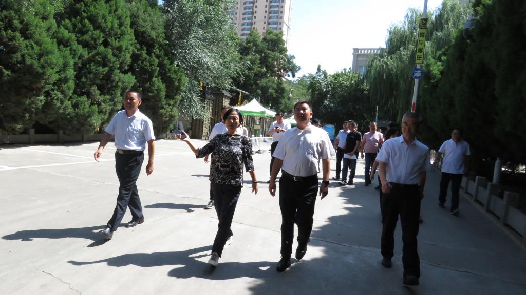 8月24日下午,七里河区文明城市创建检查组对学院文明城市创建工作进行现场督查指导。区委常委、区委书记芮成刚,区委常委、区委副书记孙洋,区委常委、宣传部部长查永国,区委常委、区委办主任肖矛,区政府副区长七里河公安分局局长郭玉宏带队检查。晏家坪街道党工委书记杨秉培等街道社区领导共同参加。学院党委书记、院长王娟丽陪同检查。