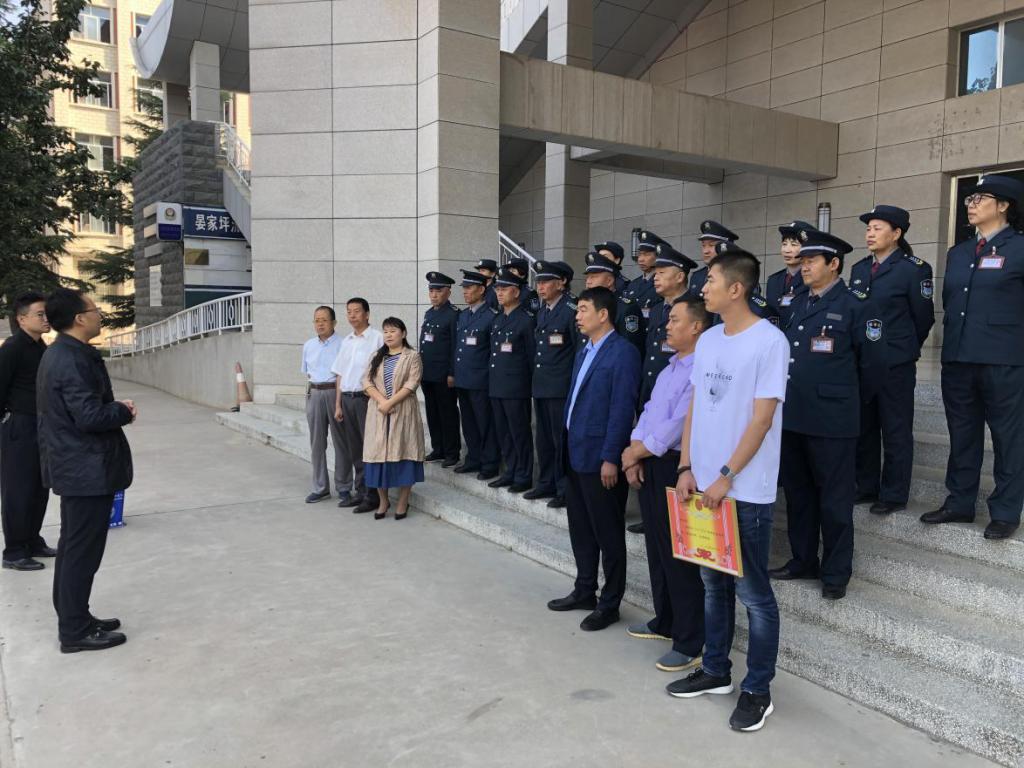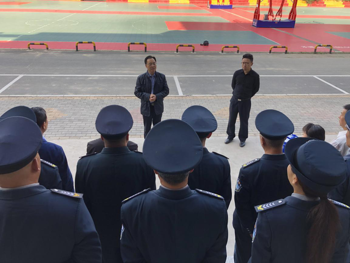 学院领导“教师节”慰问一线保安员 日期:2020-09-10 来源: 9月10日上午,学院党委委员、副院长高忠有慰问了自疫情发生以来一直坚守在工作岗位上的全体保安员。 首先,高忠有同志对保安员前一阶段工作给予了高度评价,对保安员忠于职守,为学院安全作出的贡献表示感谢。并指出,虽然保安员不是专业的教育工作者,但在全员育人的环节中也占据了特殊的地位,也应有自己的使命与担当。在接下来的工作中,希望保安员继续保持和发扬良好的工作作风,继续为学院稳定做出应有贡献。 最后,高忠有同志为全体保安员发放了纪念品,并祝全体保安人员在第36个教师节与全院教职员工同心同乐。