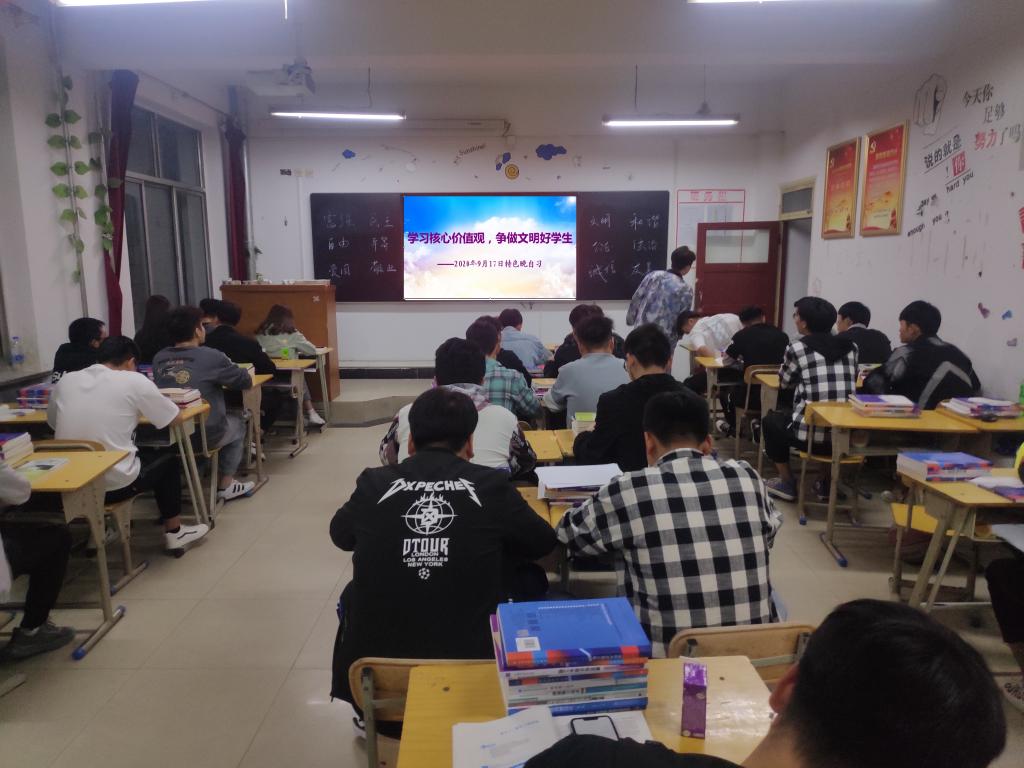 为了营造文明和谐的育人环境,引导学生自觉践行社会主义核心价值观,严格落实常态化疫情防控形势下的各类防控措施,助力打造和维护兰州市文明城市形象,给兰州市文明城市创建增光添彩,9月17日晚,学生工作处利用晚自习时间,组织2019级各班学生认真学习了社会主义核心价值观。