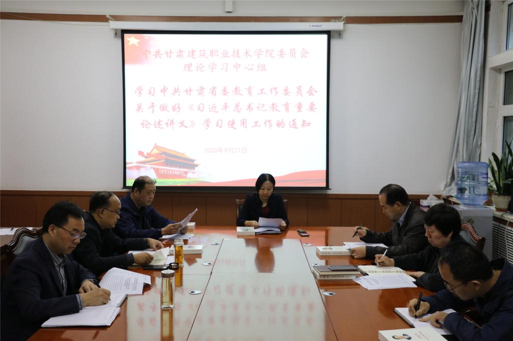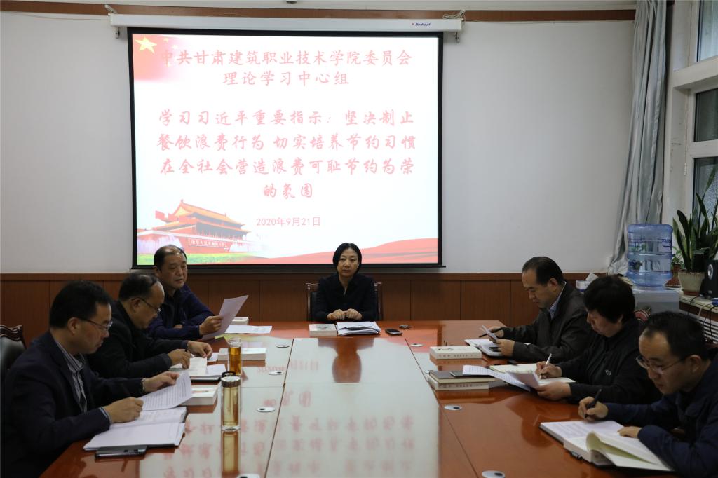 9月21日,甘肃建院党委理论学习中心组组织学习《中共甘肃省委教育工作委员会关于做好《习近平总书记教育重要论述讲义》《习近平作出重要指示强调 坚决制止餐饮浪费行为 切实培养节约习惯 在全社会营造浪费可耻节约为荣的氛围》的学习会。党委书记、院长王娟丽及班子成员、中心组全体成员参加了学习会,党委副书记王继伟主持。