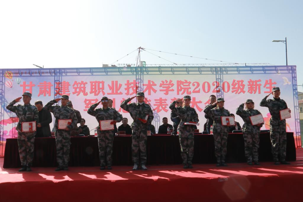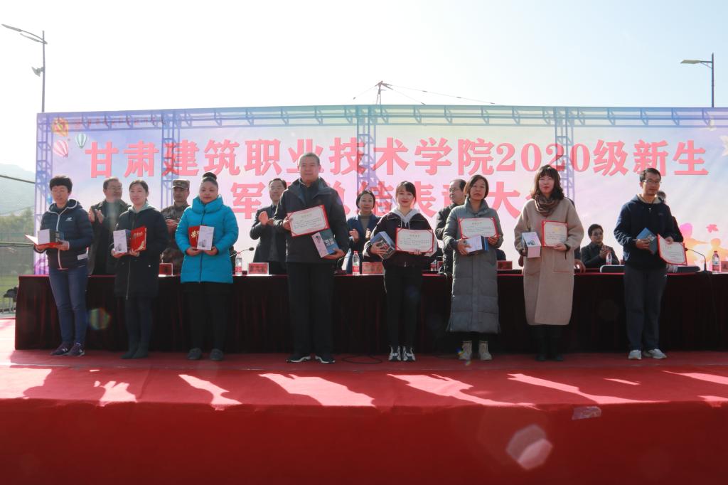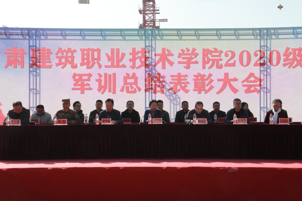 军训成果总结结束后,学院党委委员、副院长李君宏同志宣读了《甘肃建筑职业技术学院关于表彰2020级学生军训先进集体及先进个人的决定》;主席台领导为获奖集体和个人颁发了荣誉证书与奖品,学院党委书记、院长王娟丽代表学院向中国人民解放军赠送了“军校合作建平安校园,无私奉献育祖国栋梁”的锦旗。随后,2020级参训学生代表桂荣强作了热情洋溢的发言,分享了自己的军训中的感受与收获,号召同学们在未来的学习生活中保持军训中养成的良好习惯,争做优秀建院人。军训团团长薛东在发言讲话指出,学生们听从指挥,努力拼搏,克服困难,严格要求自己,严守军训纪律,以最佳的精神状态圆满完成了此次军训任务,感谢学院领导对部队的关心。