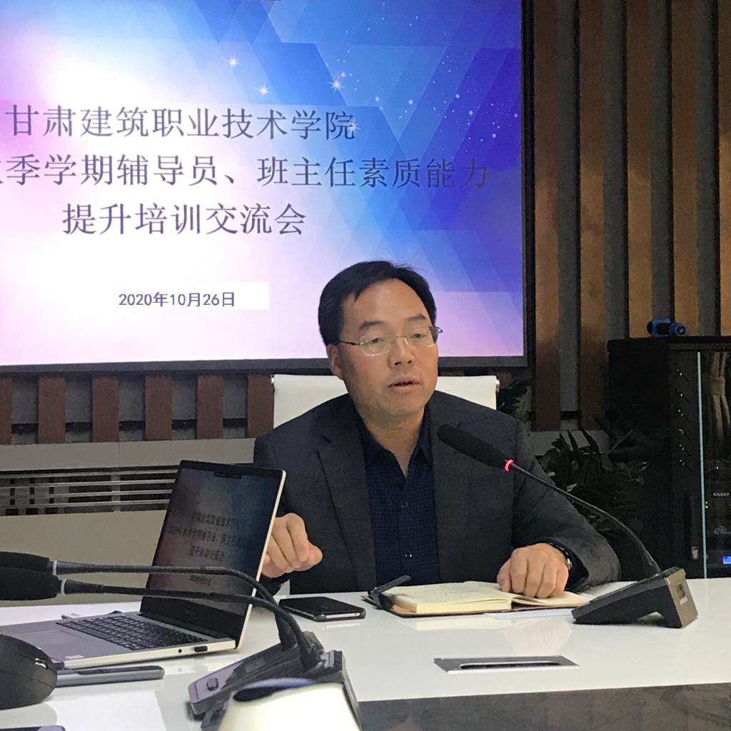 10月26日下午,学院在体育馆二楼大学生素质与能力提升基地召开了2020年秋季学期辅导员、班主任素质能力提升培训交流会。学院党委委员、副院长高忠有出席会议,六系书记、学生干事、全体专兼职辅导员以及学生工作处人员参加了会议。会议由学生工作处副处长许庆兵主持。