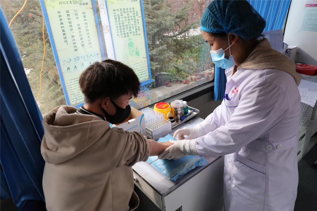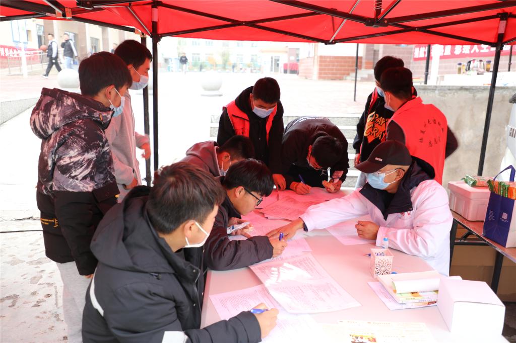 11月4日10时许,临夏州中心血站采血车开进甘肃建筑职业技术学院康乐校区,广大学子们早已有序地排起了长队,争先献血。同学们在医务人员的引导下,依次进行了信息登记、体质检查、血液类型检验、静脉采血等环节。