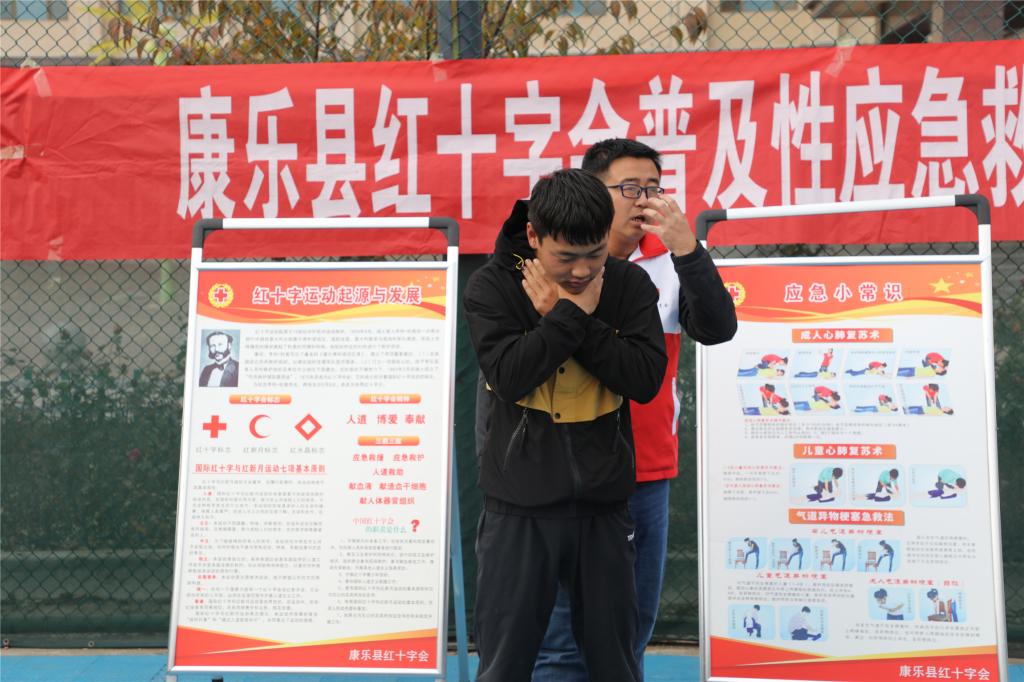 与此同时康乐县红十字会应急救护培训也在康乐校区顺利展开。为了提高培训效果,此次讲座特地为师生们准备了急救培训书籍、培训材料、宣传展板、应急救护包,使广大师生顺利的掌握相关理论知识和技能。此次应急救护培训的主要内容包括如何在踩踏事件中进行自救、急救反应系统的启动、成人心肺复苏技术以及呼吸道梗阻的识别与急救,以帮助大家在第一时间内应对发生在学校、家庭或公共场所的突发状况,为挽救病人生命争取时间和机会。培训分为理论讲授和实践操作两部分。