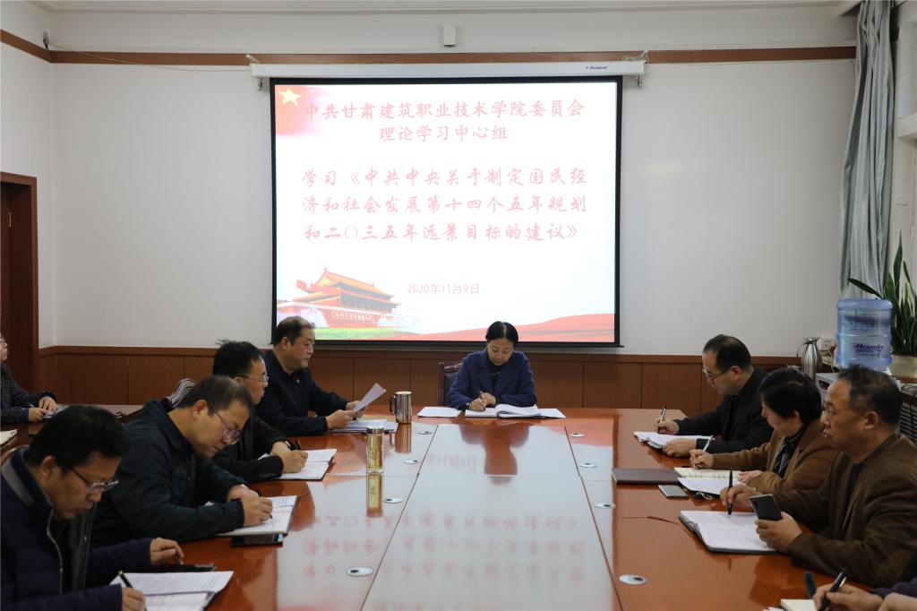 11月9日,甘肃建院党委理论学习中心组召开了解读《中共中央关于制定国民经济和社会发展第十四个五年规划和二〇三五年远景目标的建议》学习会。学院党委书记、院长王娟丽及班子成员,党委副书记王继伟主持学习,中心组全体成员参加了学习会。