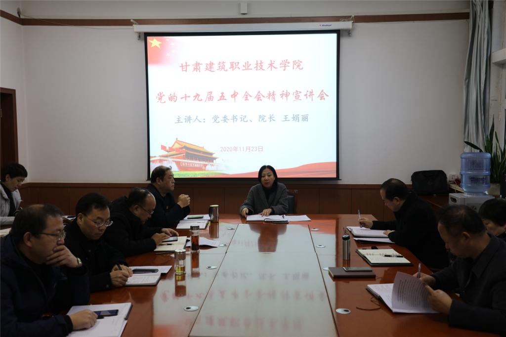 11月23日,甘肃建院党委理论学习中心组召开学习会。党委书记、院长王娟丽及领导班子成员、中心组全体成员参加了学习会,党委副书记王继伟主持。会后,王娟丽作了《党的十九届五中全会精神》的讲座。