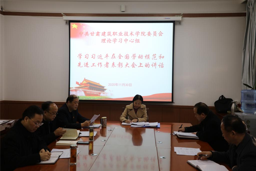 11月30日,甘肃建筑职业技术学院党委理论学习中心组召开《习近平在全国劳动模范和先进工作者表彰大会上的讲话》专题学习会。党委书记、院长王娟丽及领导班子成员,中心组全体成员参加学习会,党委副书记王继伟主持学习。