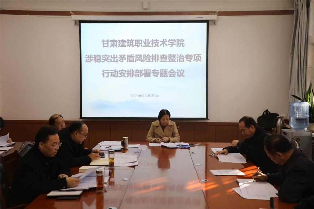 与此同时,还召开了甘肃建筑职业技术学院2020-2021学年度领导干部安全管理包抓机制安排部署专题会议,甘肃建筑职业技术学院涉稳突出矛盾风险排查整治专项行动动员会,党委委员、副院长高忠有安排部署了会议具体安排,要求认真组织贯彻落实会议精神。