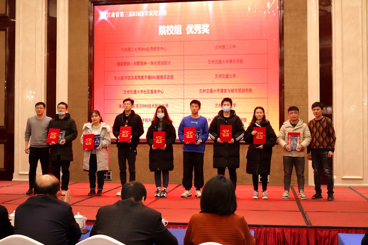 12月24日下午,由我院承办的甘肃省第三届 BIM 技术应用大赛颁奖典礼在长城建国饭店如期举行,出席颁奖典礼的嘉宾有甘肃省建筑业联合会郭强会长、甘肃建筑职业技术学院高忠有副院长等大赛主办方、承办方代表以及获奖单位、获奖院校代表。
