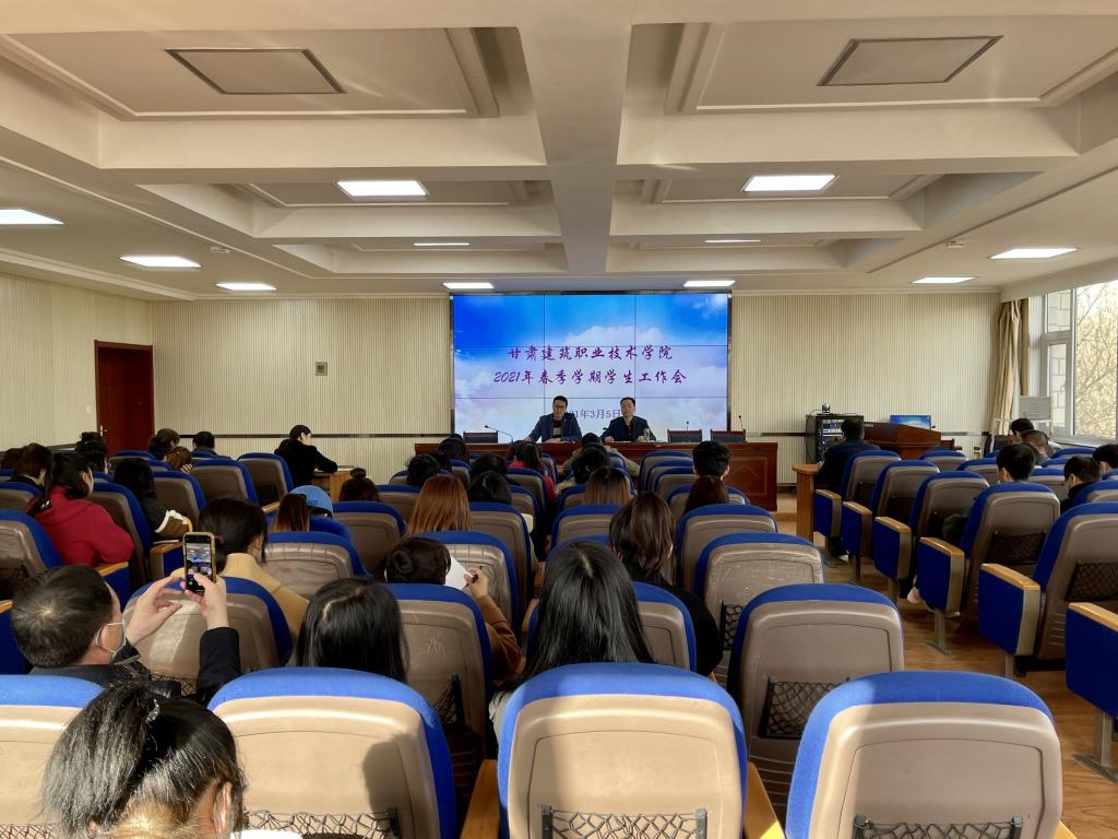 会上,学生工作处处长许庆兵围绕学院《关于做好2021年春季学期开学学生疫情防控工作的通知》以及《关于做好2021年春季学期开学学生管理工作的通知》,安排部署了两个校区学生返校开学及开学后相关工作,要求各系及辅导员提前做好准备工作,确保学生安全返校;学生返校后坚持做好常态化疫情防控及学生日常管理工作,扎实开展“开学第一课”,维护良好的教育教学秩序。同时,许处长结合当前形势和学院实际,对本学期开学后重点工作进行了说明,希望全体学生工作人员进一步加强学生思想政治教育及引导,认真做好2021届优秀毕业生评选、省级三好学生评选、学生转专业以及宿舍文化建设等工作,积极参加全省职业院校技能大赛高职班主任能力比赛、职业教育名班主任工作室建设及教育部人文社会科学研究高校辅导员研究专项任务项目申报,不断提高自身素质能力和业务水平,努力推动学院学生工作提质升级。