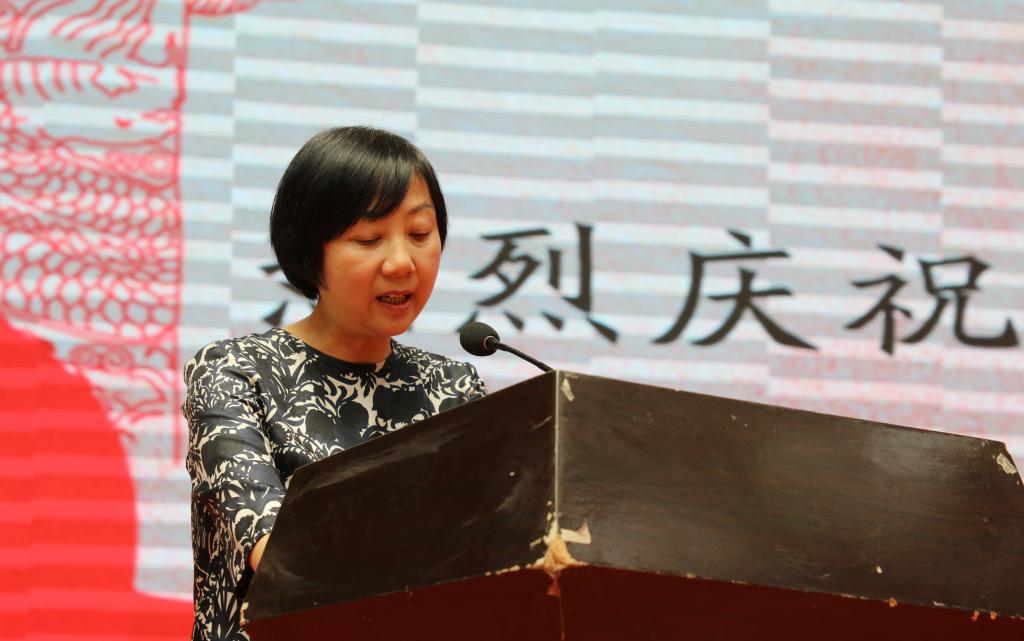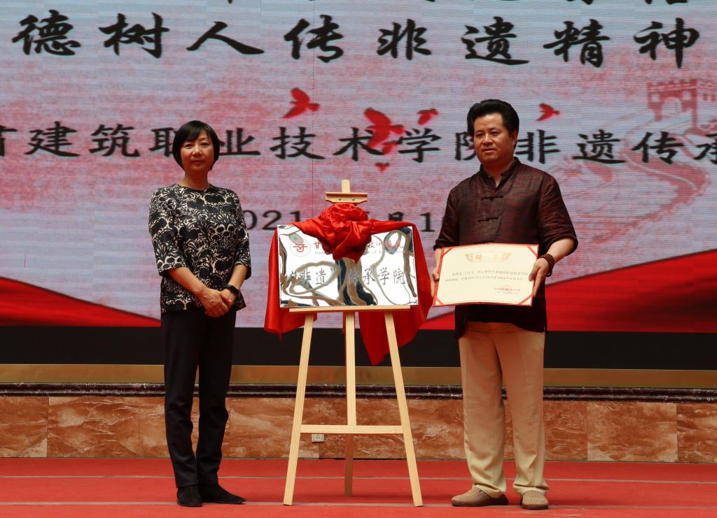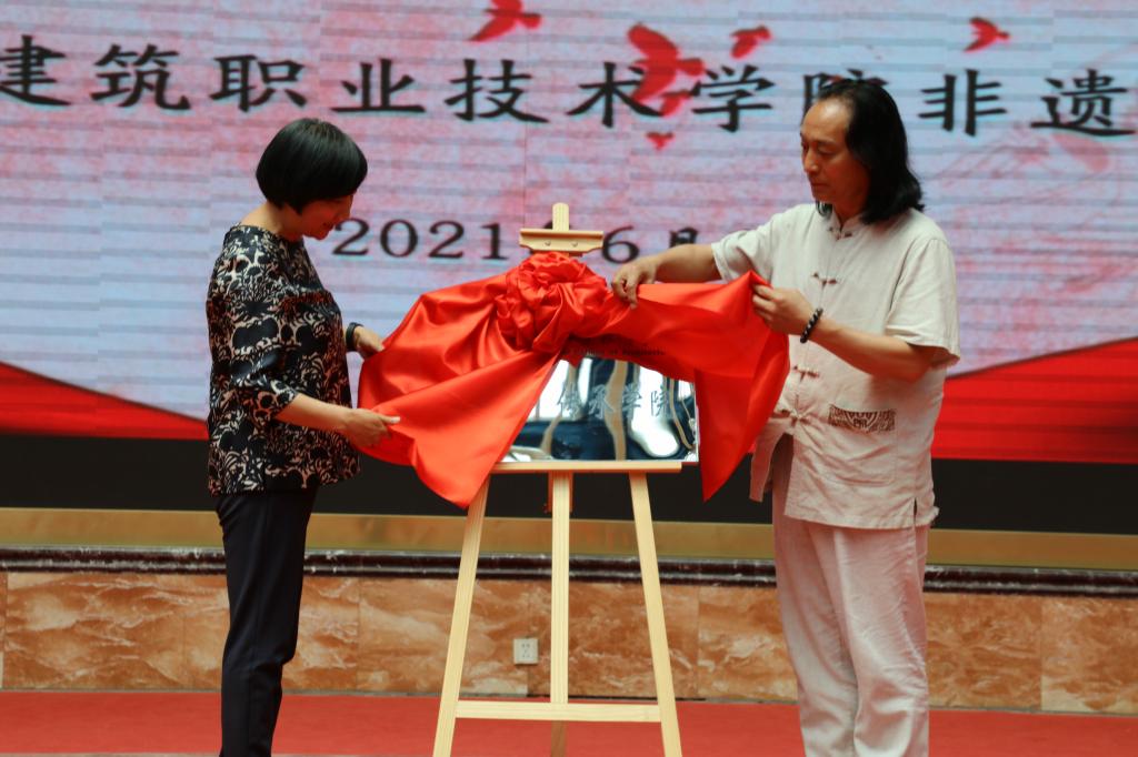 王娟丽同志宣布“非遗”学院成立,并与常天平老师进行揭牌。
