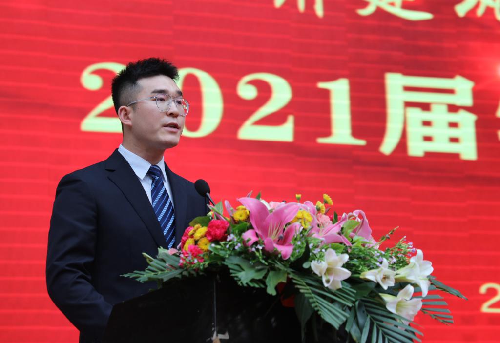 优秀毕业生代表2018级建筑工程技术(1)班马东同学在发言中分享了三年来,经过自己的刻苦努力,获得的国家励志奖学金、学院“三好学生”、在技能大赛中喜获三等奖等荣誉。并为即将走向工作岗位的学子们发出倡议,希望大家谨记校规校纪,以文明合理的方式表达对友谊的眷恋之意,对恩师的感谢之情;坚持做好个人防护,确保安全文明离校,为学弟学妹们做好榜样;始终秉承志高、笃学、有为、创新的校训,在各个领域努力进取,追求卓越,让建院因我们的优秀而骄傲。