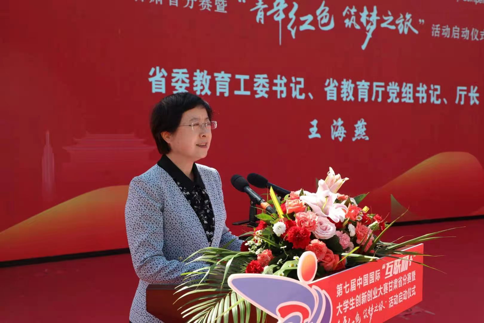 启动仪式前,与会领导在南梁英雄纪念碑前举行了向逝去英雄敬献花篮仪式。启动仪式上,教育厅厅长王海燕在讲话中指出,近年来省委省政府大力实施创新驱动发展战略,把教育、科技列为“双创”主阵地,把高校和青年学生作为“双创”主力军,把大赛作为深化“双创”教育改革的重要载体和平台,推动全省高校创新创业工作取得显著成效。王海燕强调,高校在落实立德树人和人才培养的根本任务中,要努力做到“三个聚焦”,一是聚焦大学生创新创业能力提升,让“敢闯会创”成为创新创业教育的主题词;二是聚焦创新创业成果转化,让“落地生根”成为优秀项目创造价值的根本链;三是聚焦青年学生家国情怀培养,让“红色基因”赓续传承成为高校思政课的永恒线。