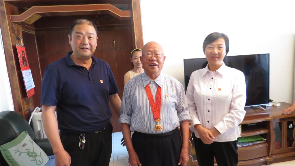 党荣国老人听说学院领导要来慰问,专门换了一件新衬衣迎候。来到家中,王娟丽同志为党荣国佩戴了中共中央颁发的“光荣在党50年纪念章”,并送上了鲜花祝福。党荣国老人激动的握着王娟丽同志和王继伟同志的手,饱含深情地讲到,感谢组织关怀,感谢学院领导关心。并给前来慰问的一行人员讲述自己于1949年入党,1991年离休,今年91周岁,已有72年的党龄,经历了国家发展的不易,见证了共产党百年成就的辉煌。看到老人虽年事已高,但精神抖擞、思路清晰、家庭和睦,慰问人员很是欣慰。王娟丽同志说,广大老党员为党和人民的事业做出过积极贡献,是党和人民的宝贵财富,组织部门要更加关心关注老党员的生活,真心实意为他们办实事、解难事、做好事,让老党员安享晚年。并详细询问老人家的身体状况等情况,祝福党荣国及其家人健康长寿。