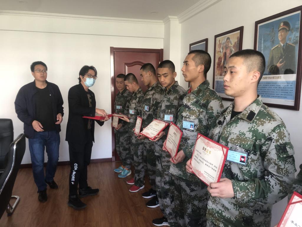 会后许庆兵、王亮同志为应征入伍的同学颁发了“参军报国优秀大学生”荣誉证书,发放了带有学院特色的纪念品双肩包和钢笔,正逢中秋佳节到来之际,学院也为同学们准备了月饼、水果等慰问品,表达了学院对同学们的祝福与祝贺。