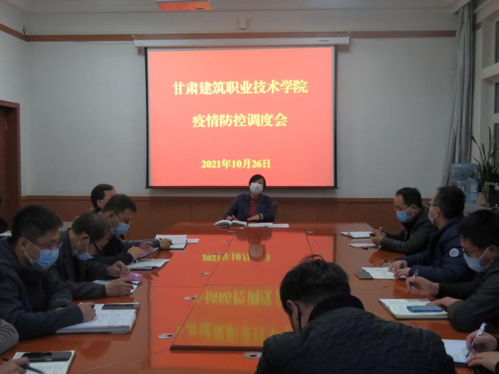 10月26日晚,甘肃建筑职业技术学院新冠肺炎疫情防控领导小组全体人员参加了省教育厅召开的调度会(视频)会议。学院党委书记、院长王娟丽,党委委员、副院长高忠有,党委委员、组织人事处处长、院办主任张长颖及相关人员参加。