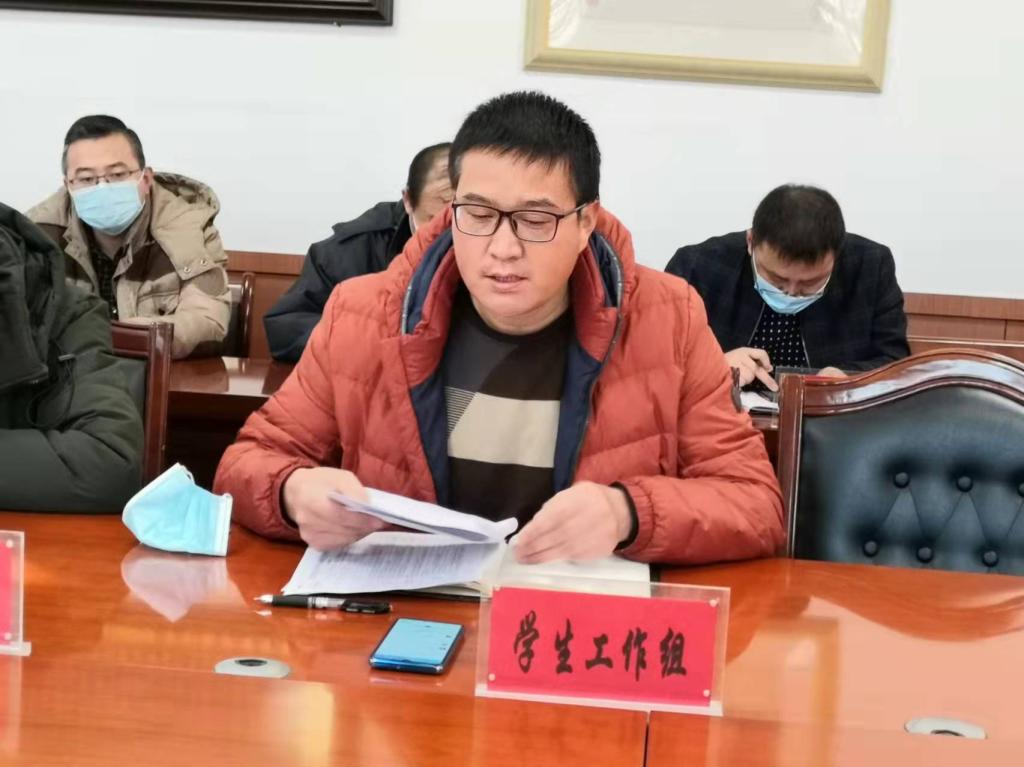 会上,高忠有同志传达中共甘肃省委教育工作委员会甘肃省教育厅关于印发《甘肃省校园安全专项整顿工作方案》的通知。通知要求,各地各校要迅速启动专项整顿,进一步提高政治站位,强化责任担当,充分认识校园安全专项整顿工作的重要性、必要性和迫切性。全力推动重点任务落实,逐一进行梳理分析,强化工作举措,推动整改。