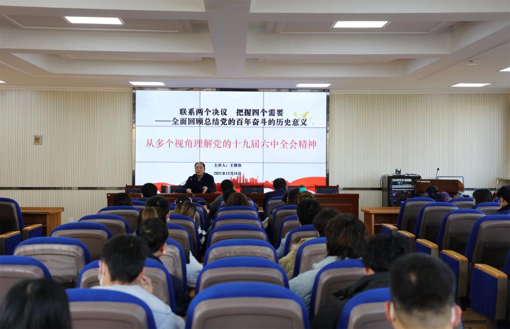 12月16日,学院党委副书记王继伟做了题为“联系两个决议 把握四个需要,全面回顾总结党的百年奋斗的历史意义——从多个视角理解党的十九届六中全会”的讲座,机关第二党支部、建筑经济管理系的全体师生党员到场聆听。