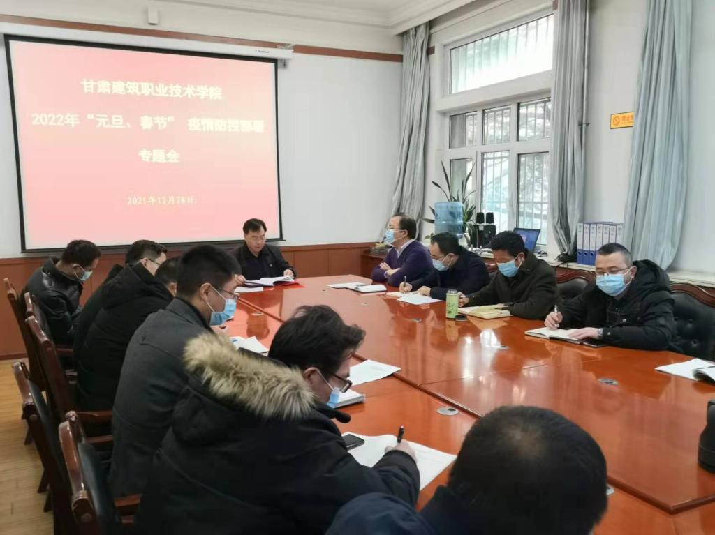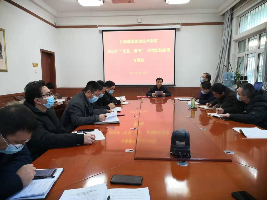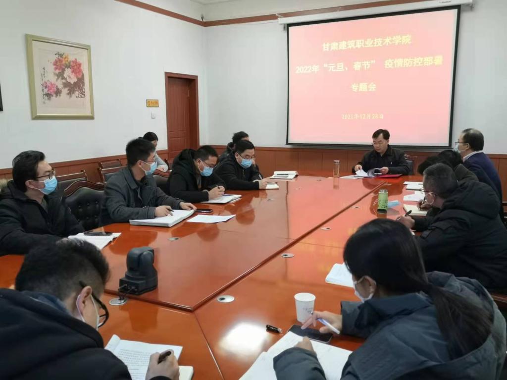 为全面贯彻落实甘肃省2022年元旦春节期间新冠肺炎疫情防控工作部署要求,切实做好学院2022年元旦及寒假期间疫情防控工作,根据相关要求,12月28日,学院疫情防控领导小组召开了2022年“元旦、春节”疫情防控部署专题会,党委委员、副院长高忠有主持会议,组织人事处、学生处、教务处、各系书记、保卫处等相关部门负责人参加了会议。