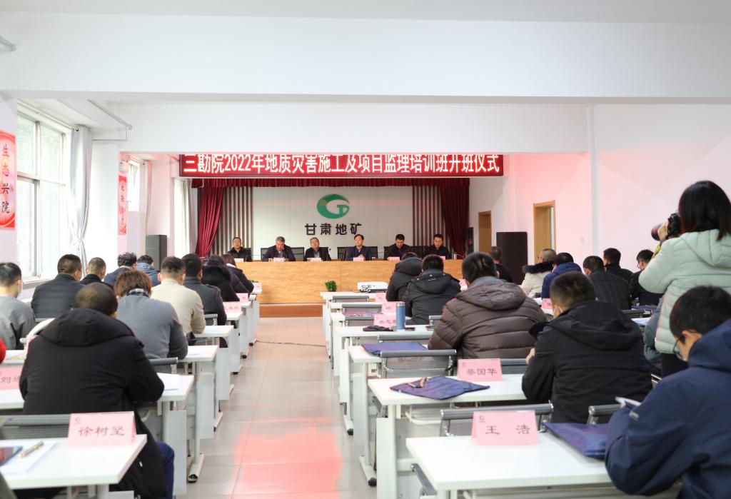 1月4日上午,由甘肃省地矿局第三地质矿产勘查院和我院合作共同举办的“2022年甘肃省地矿局第三地质矿产勘查院地质灾害施工及工程项目监理人员技能提升培训班”开班仪式在三勘院顺利召开。甘肃省地矿局第三地质矿产勘查院院长张卫雄,副院长翟向华、董瀚,副院长、总工程师王玉玺,甘肃建筑职业技术学院党委委员、副院长高忠有,培训处处长梁明,培训处副处长魏才年以及50名学员参加了开班仪式,仪式由董瀚主持。