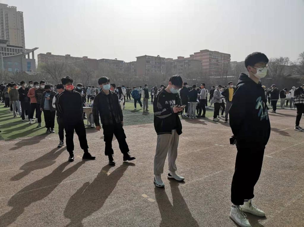 3月14日上午,兰州校区全体师生进行核酸检测工作,在各系留守老师和自律会学生的引导下,核酸检测现场排队的师生们保持一米线距离,严格遵守疫情防控政策,做完检测后的学生由学生干部有序地自行带回。