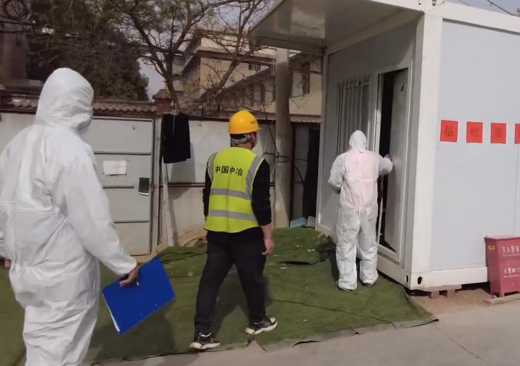 事发原因是一位施工人员上班例行检查时核验体温为37.5度,门卫工作人员立即向项目部通知,项目部人员执行快速反应启动应急预案,迅速赶到现场进行一人一档登记后,将该工人进行紧急隔离,并在隔离室周围拉起了警戒线,随即对施工现场进行全面消杀,同时向街道办相关人员报告,街道办人员立即汇报疾控中心并联系救护车赶赴项目现场,体温异常人员被带走集中隔离。此次疫情防控应急演练井井有条,有序不紊,对后期的疫情防控工作奠定了良好的基础。