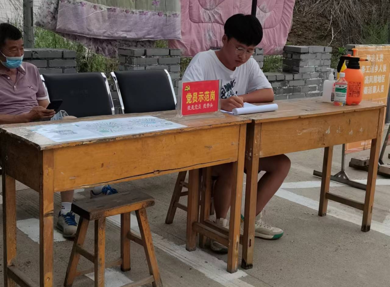 于飞是建工系一年级的学生,即将进入大二,疫情突然反弹,他看到团省委的号召后积极响应,作为一名大学生,也是一名入党积极分子,他毅然加入大门镇田于村村委防疫工作小组,为村里做一点贡献。他说:正是从千千万万小家中挺身而出的医务人员、党员干部、志愿群众,走在抗疫第一线,才换来全国疫情的缓解。没有从天而降的英雄,只有挺身而出的凡人。如今既有余力,为国奉献,便是中国青年应有之模样。疫情不退、志愿不停。