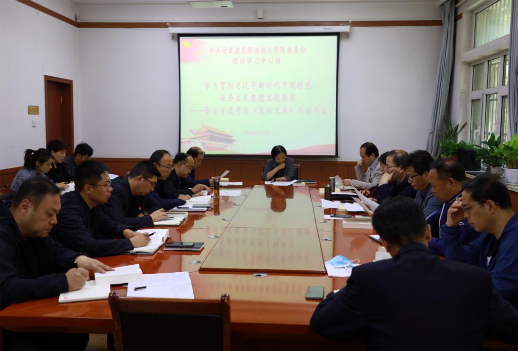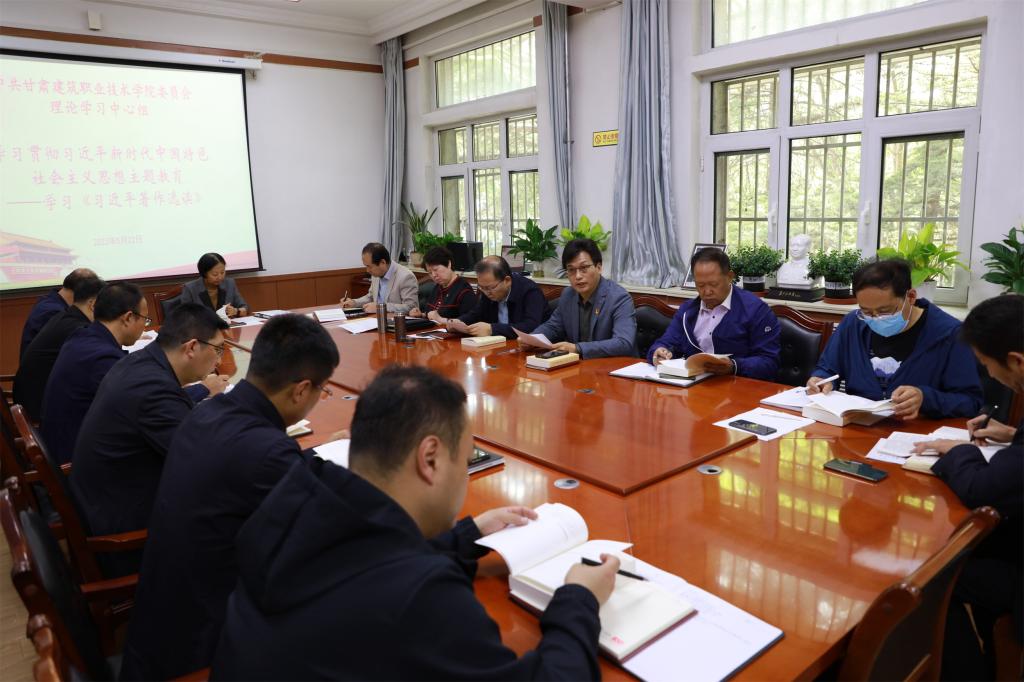 5月22日,甘肃建筑职业技术学院党委理论学习中心组开展学习贯彻习近平新时代中国特色社会主义思想主题教育研讨交流和学习。学院党委书记、院长王娟丽,领导班子成员及中心组全体成员参加。党委宣传统战部常务副部长李维敦主持。