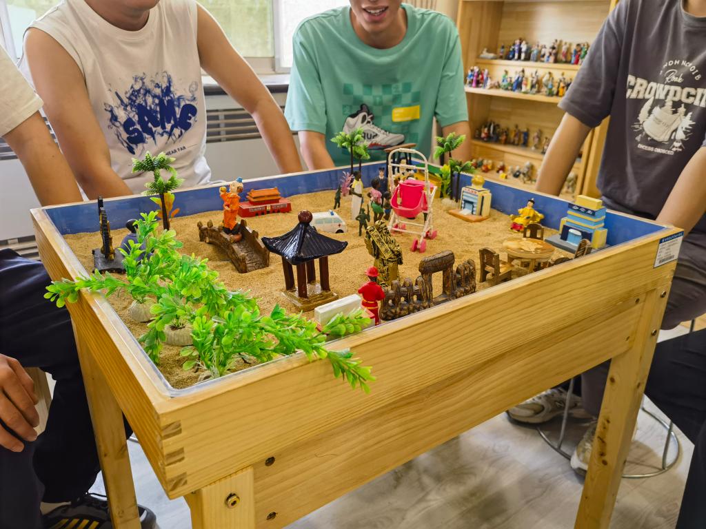 明亮的灯光、干净的地板、安静的空间、有趣的沙具,带来的是温馨和轻松的感受。当进入沙盘室,看到摆放整齐的沙盘和各种沙具,同学们仿佛被带回了童年,喜悦之情溢于言表。学院大学生自我和谐与人际关系团体辅导沙盘游戏体验活动“夏日暖心 美好遇见”之旅,在这个五月开启。