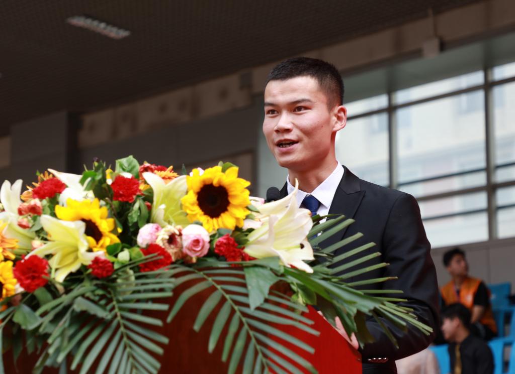 优秀毕业生代表2020级测绘地理信息技术2班梁亮同学发言。他回顾了自己来到甘肃建院三年来的学习和生活,分享了自己的收获与感悟,表达了对学院的感激和不舍。他号召大家,无论走到哪里,始终牢记“志高、笃学、有为、创新”的校训,不辜负学院的期待、老师的叮咛,用学院赋予我们的知识与智慧去创造美好的未来。
