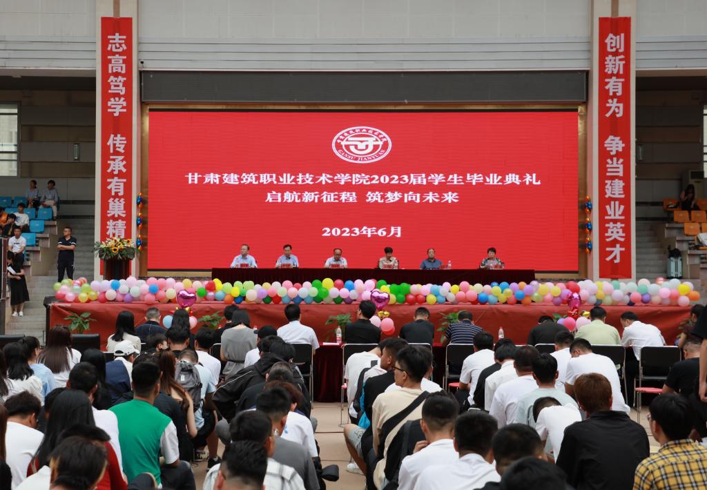 6月20日上午,甘肃建筑职业技术学院2023届学生毕业典礼在学院体育馆举办。学院党委书记、院长王娟丽及领导班子成员,各系、处室负责人,全体学生参加了毕业典礼。典礼由党委委员、副院长高忠有主持。
