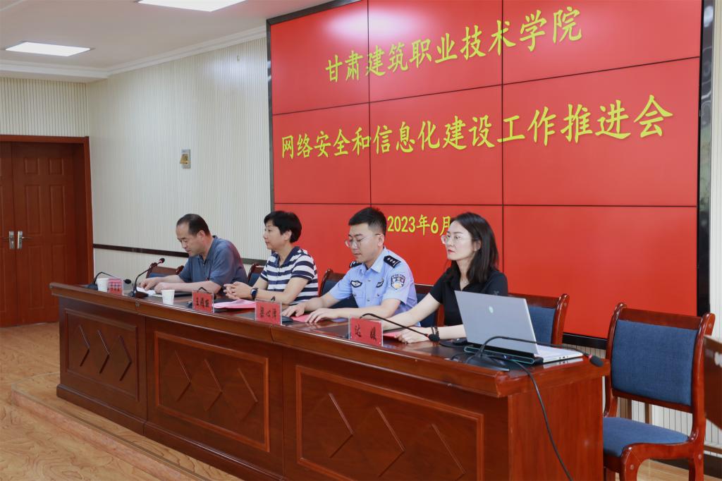 为深入贯彻落实党的二十大报告精神,加快落实网络强国、数字中国的重大部署,全力确保我院网络信息安全,积极推进学院数字化建设。6月27日下午,甘肃建筑职业技术学院召开网络安全和信息化建设工作推进会。学院党委书记、院长王娟丽及领导班子成员,兰州市公安局七里河分局网安大队梁心泽队长,七里河区网信办达媛主任,学院全体中层干部、信息员参加了推进会。会议由党委委员、副院长李君宏主持。