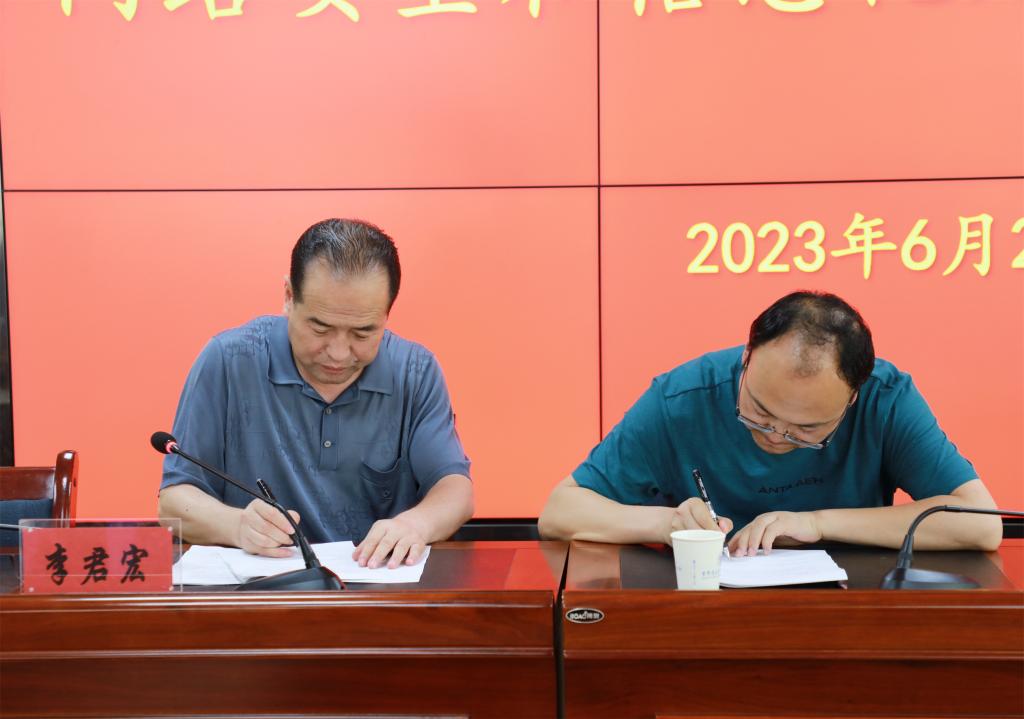 最后,领导班子成员与各自分管部门负责人签署了校园网络与信息安全责任书。