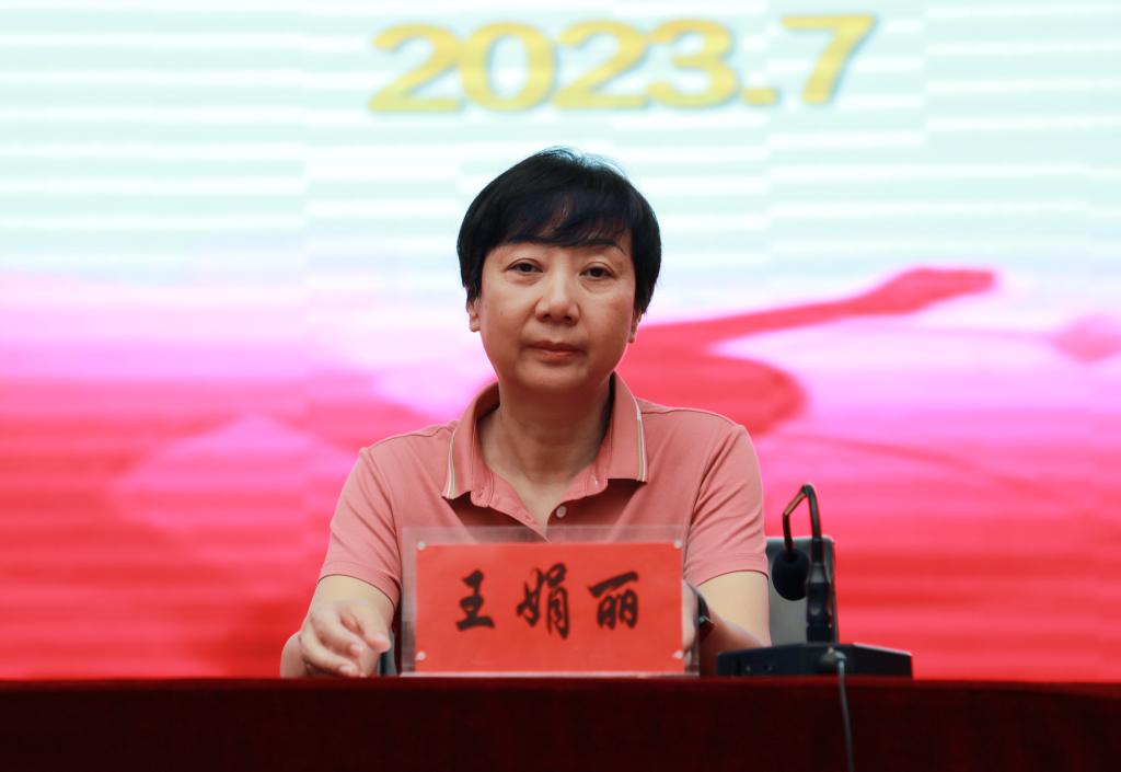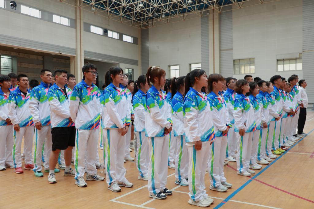 王娟丽院长在讲话中强调,全体教练员、运动员要将参加大运会作为展示学院体育工作水平,扩大学院知名度和美誉度的机会与平台,各运动队领队、教练员必须提高政治站位,强化使命担当和责任意识;要有顽强拼搏的精神,绝不轻言放弃。调整参赛状态,发挥应有的竞技水平,增强集体荣誉感,全力以赴,争创佳绩。随后,王娟丽向代表团领队武承辉授旗。